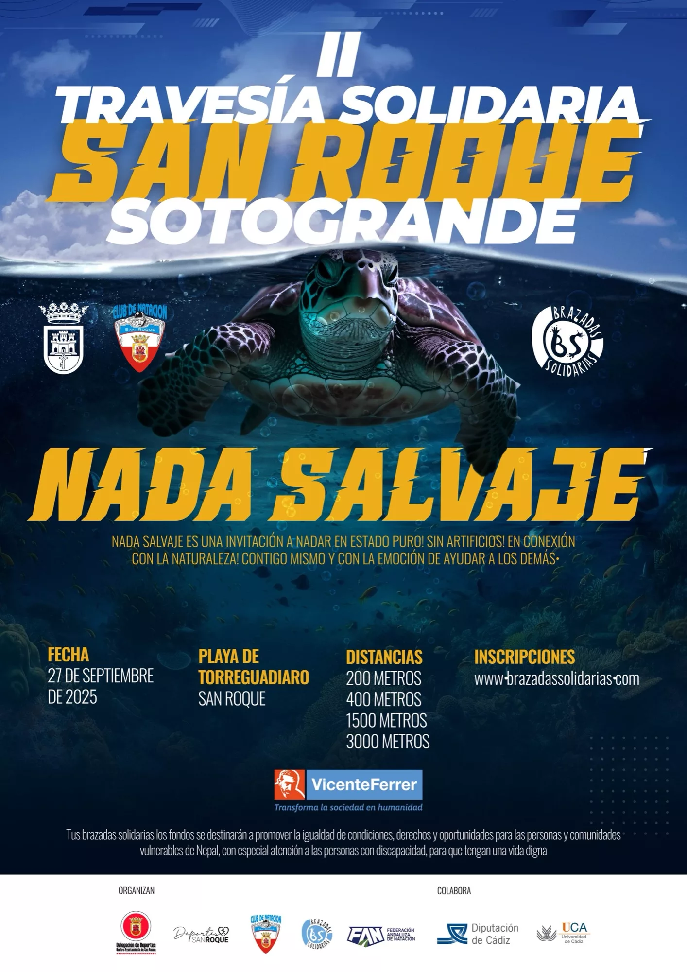 El XI Triatlón San Roque 2025 comenzará a las 10.00 horas, con el inicio de la entrega de dorsales y bolsa de material en la Zona Deportiva que se instalará en el Paseo Marítimo de Torreguadiaro hasta las 14.00 horas. A partir de las 10.30 se desarrollará la I Travesía Solidaria San Roque 2025, con salida y llegada en la playa de Torreguadiaro. En este caso, la inscripción sigue abierta, y puede realizarse en el siguiente enlace: https://faninscripciones.es/producto/2025-ii-travesia-solidaria-san-roque-sotogrande-27-de-septiembre/.