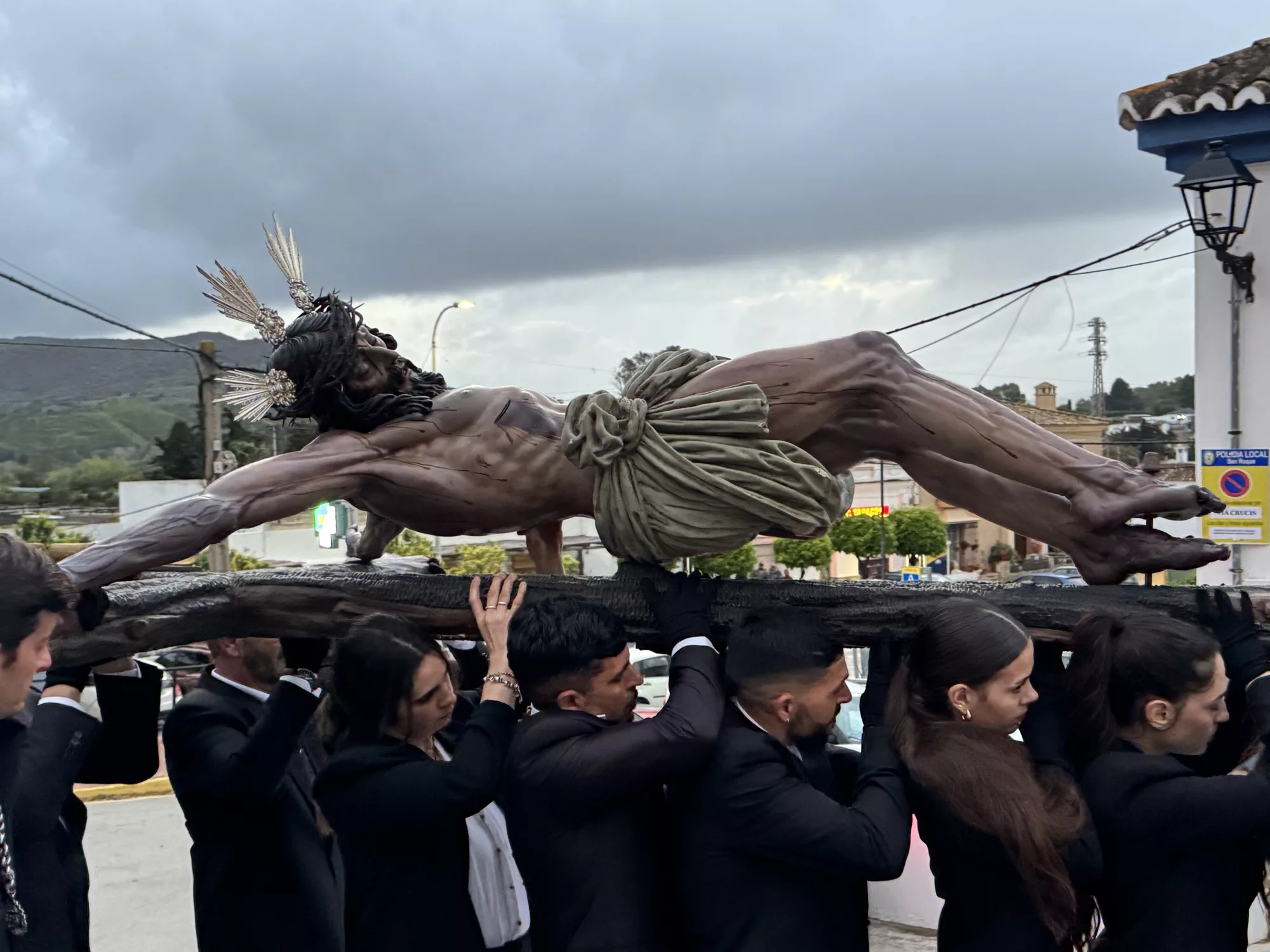 La imagen del Cristo, que previamente había sido bajada del altar por los miembros de la asociación cultural Nuestro Padre Jesús Medinaceli, Nuestra Señora de la Esperanza, y Nuestra Señora de Fátima, fue portada a hombros durante todo el viacrucis.
