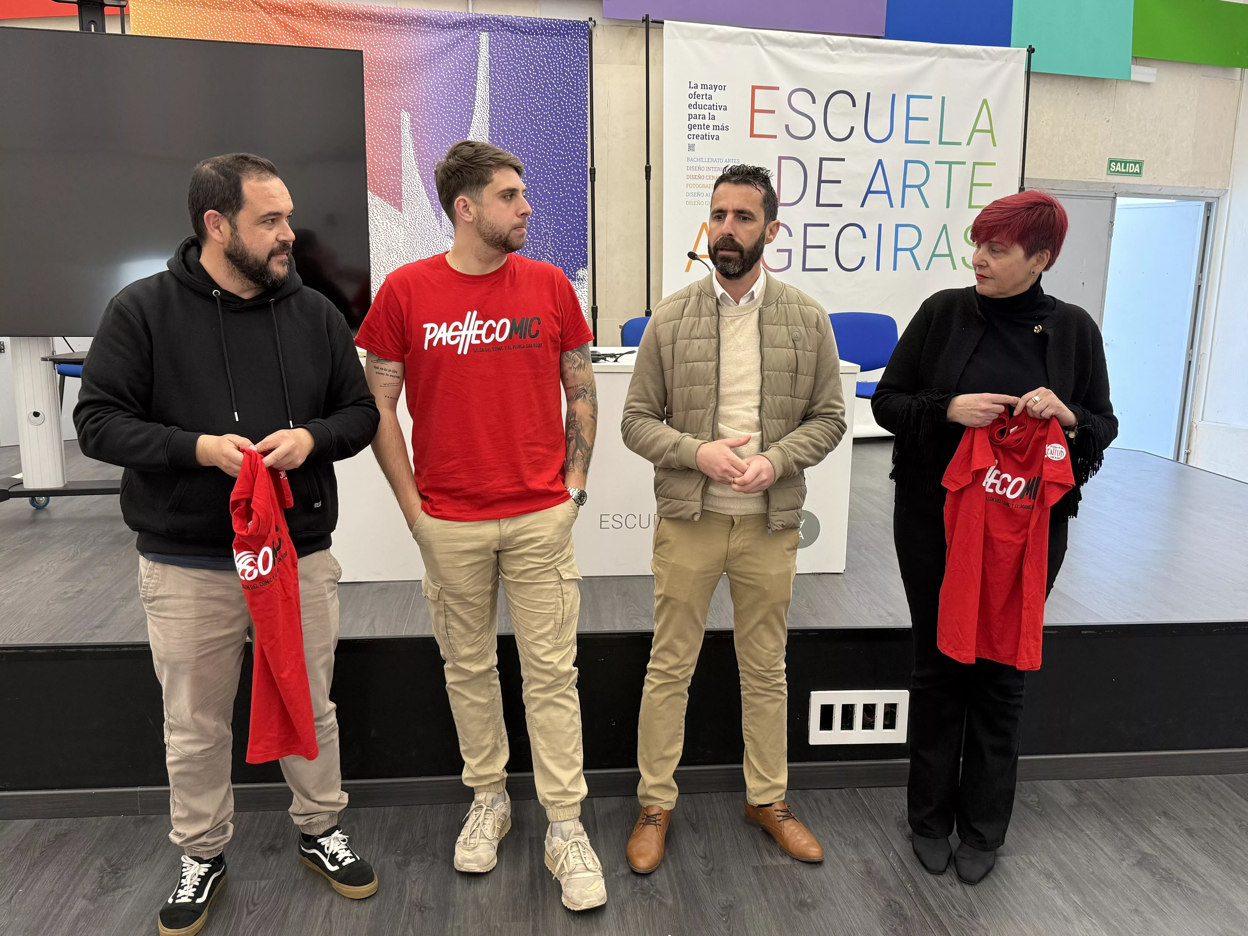 Responsables municipales de San Roque han realizado una visita a la Escuela de Arte de Algeciras con el objetivo de mantener una toma de contacto con el alumnado y el profesorado y dar a conocer la próxima celebración de Pachecomic, el Salón del Cómic y el Manga de San Roque.