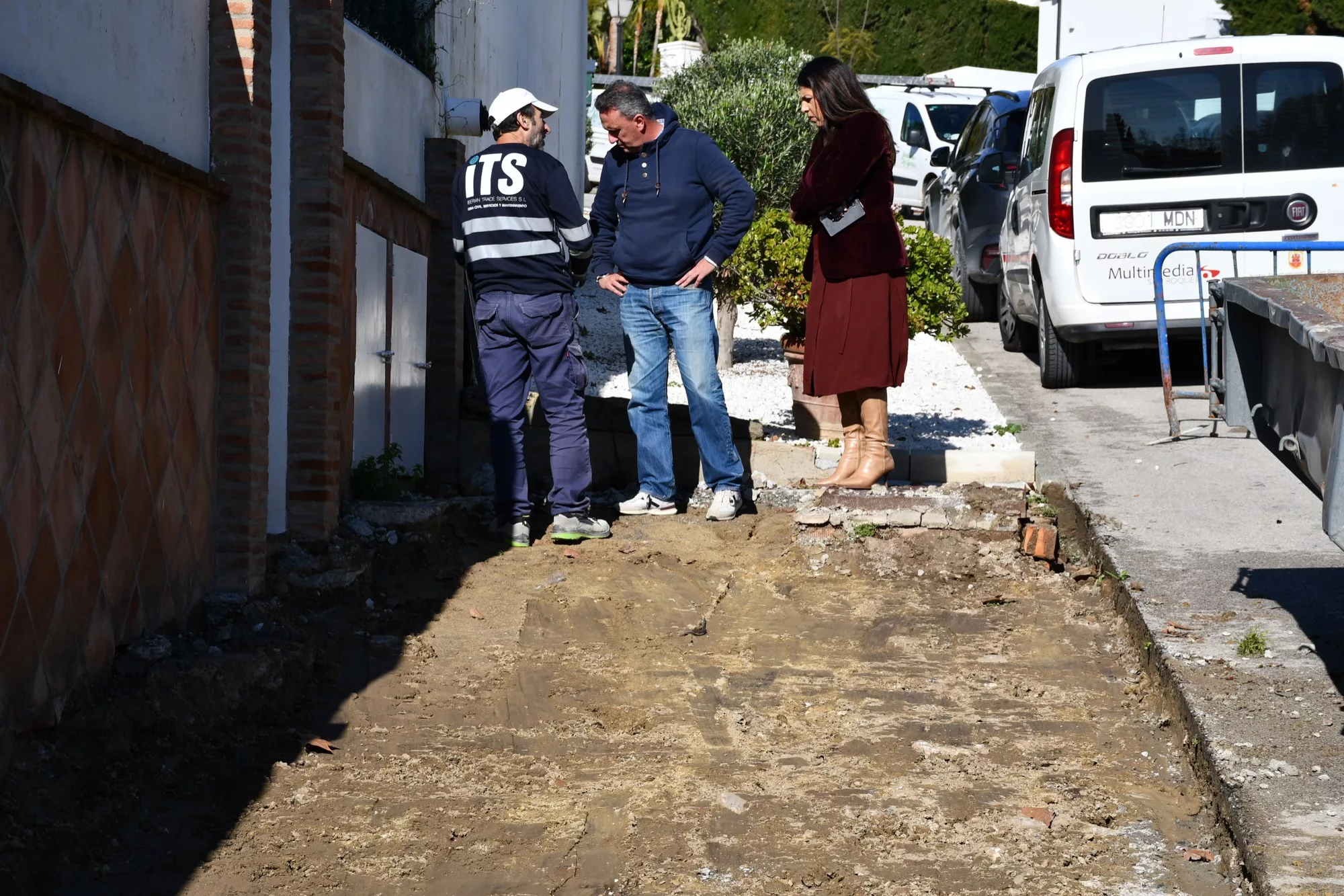La teniente alcalde de Obras y Servicios, Belén Jiménez, ha realizado una visita a los trabajos de acerado que se están llevando a cabo en la calle Altamira de Pueblo Nuevo.