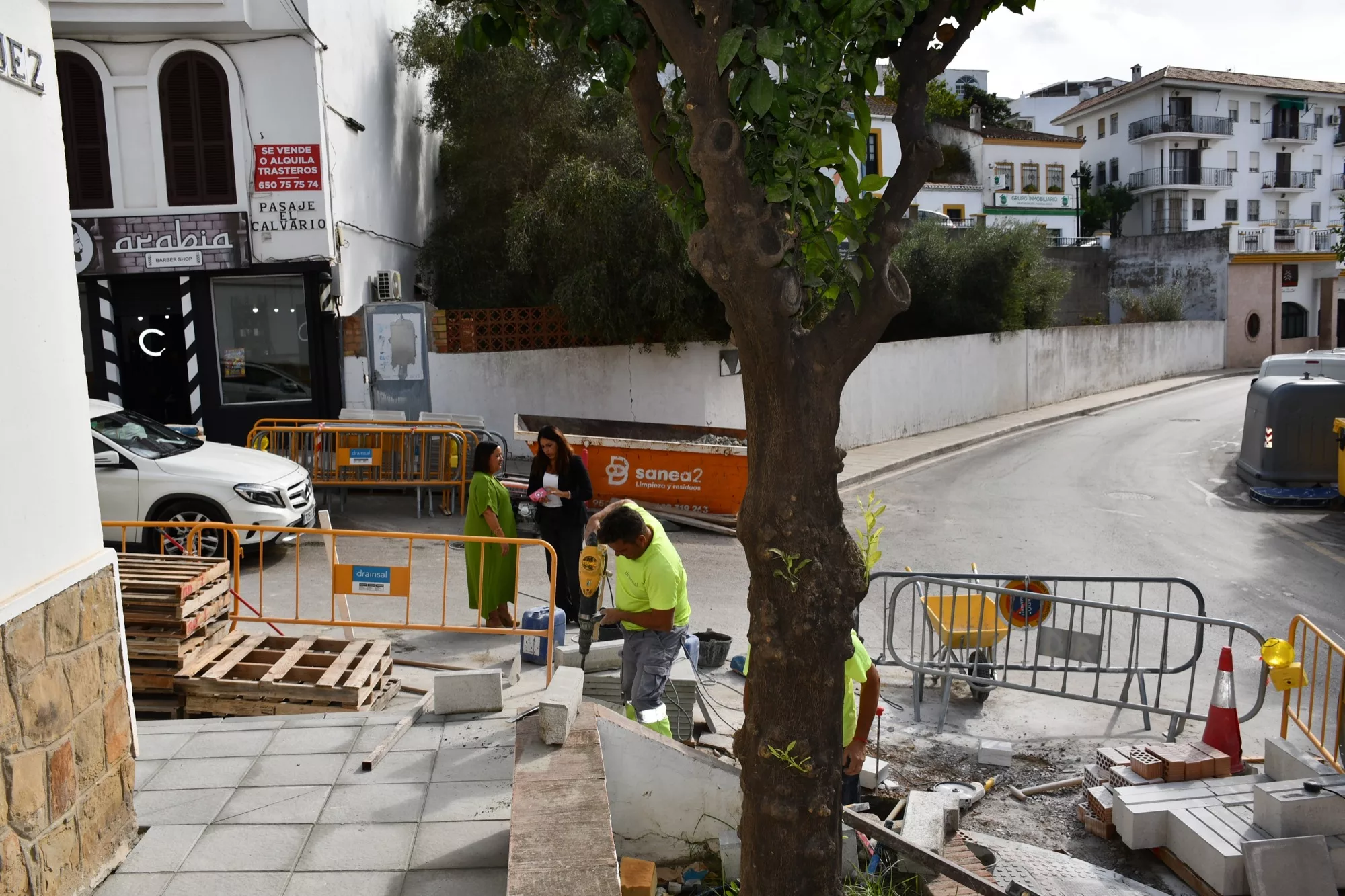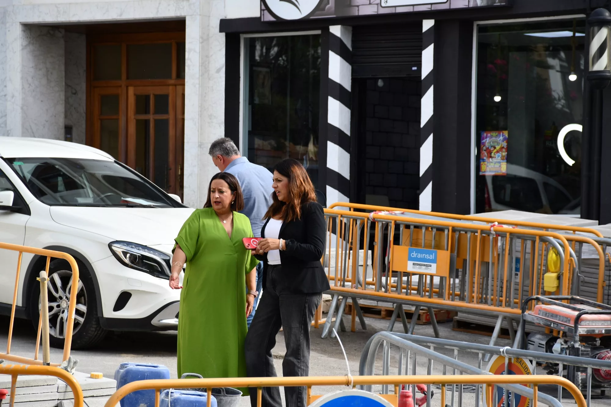 La teniente alcalde de Obras y Servicios, Belén Jiménez, junto a la de San Roque Casco, María del Mar Collado, han visitado las obras que se están realizando en la calle Velázquez y que suponen la segunda fase de los trabajos que se han realizado en esta vía.