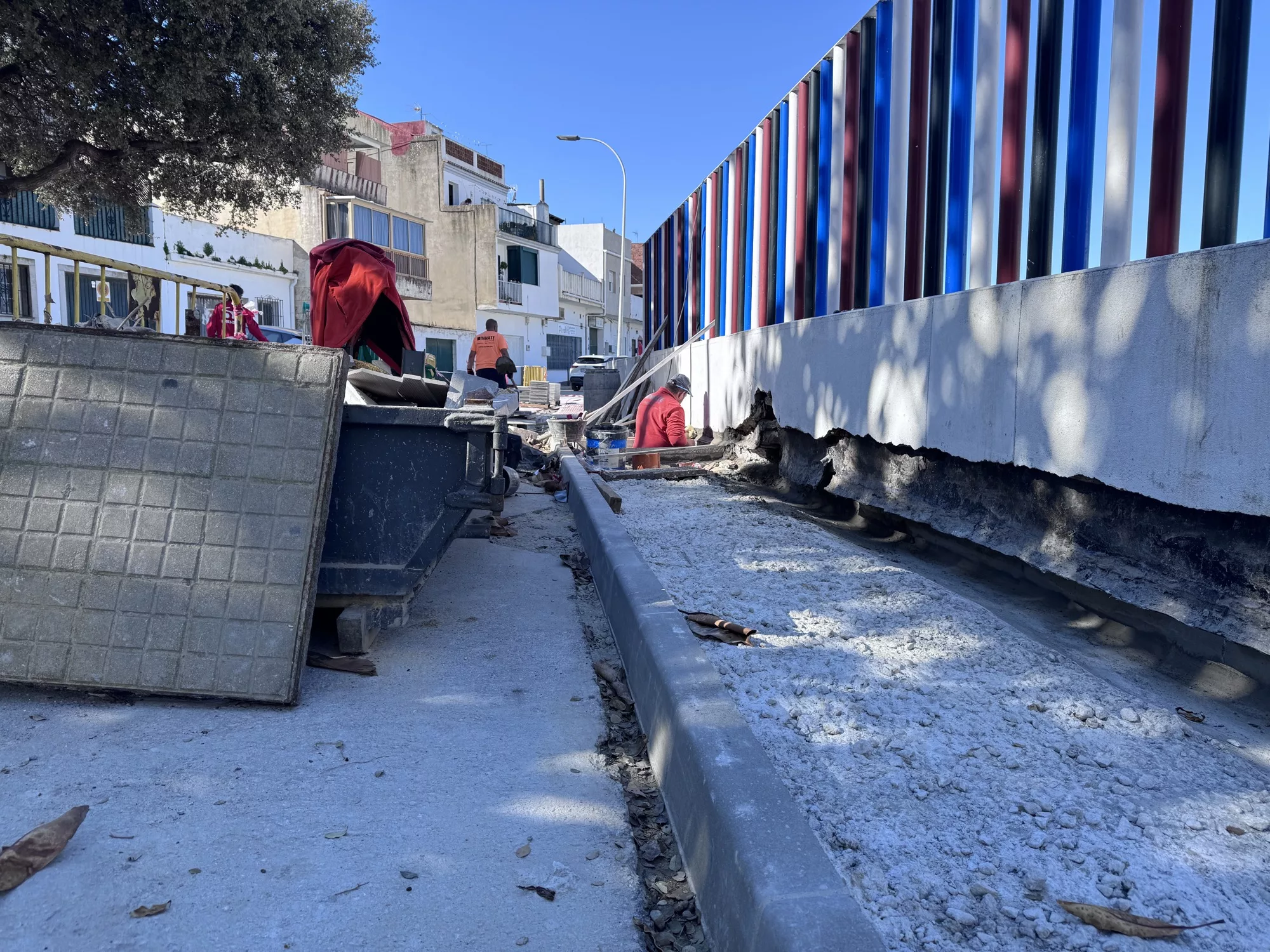En la actualidad, los trabajos se centran en la renovación del acerado en el punto de unión con la cubierta del mercado. Según explicó Jiménez, la actuación no se limita únicamente a la reposición del pavimento, sino que incluye también la instalación de nuevas infraestructuras. “No solamente estamos reponiendo el acerado, sino que también estamos realizando nuevas instalaciones de alumbrado público”, indicó.