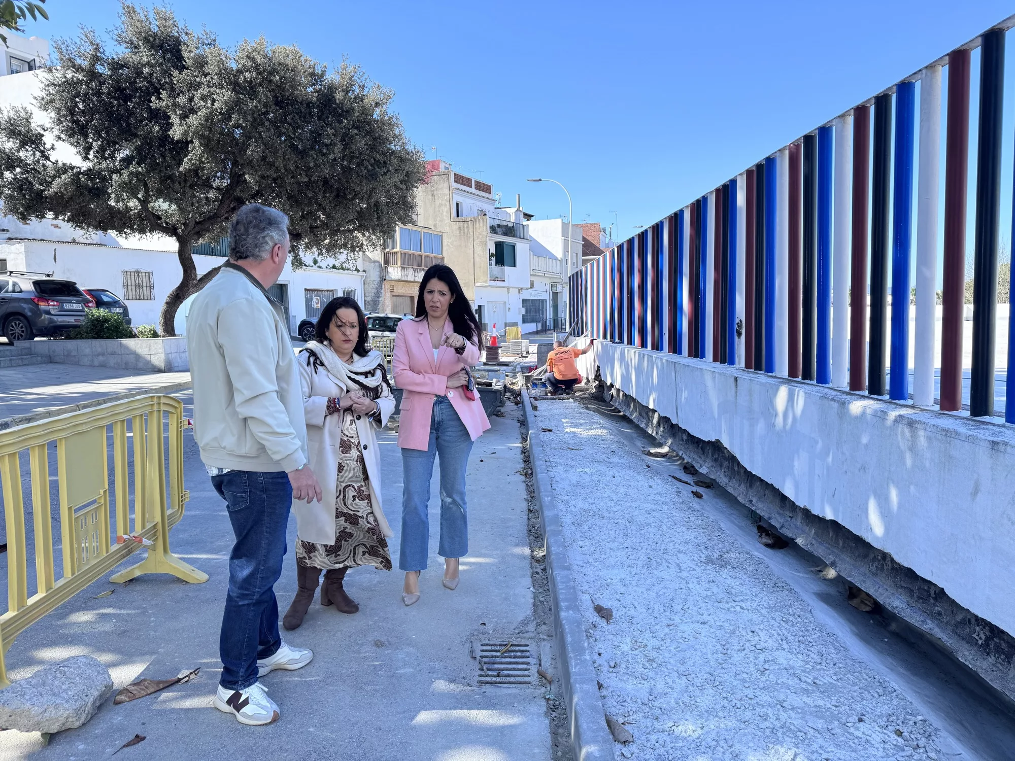 La teniente de alcalde delegada de Obras y Servicios, Belén Jiménez, ha visitado los trabajos que se desarrollan en la Avenida Elvira Castilla del Pino junto a la teniente de alcalde del casco, María del Mar Collado. Ambas comprobaron el avance de una obra que da continuidad a otras actuaciones realizadas anteriormente en la zona, como la reposición de mobiliario urbano y barandillas.