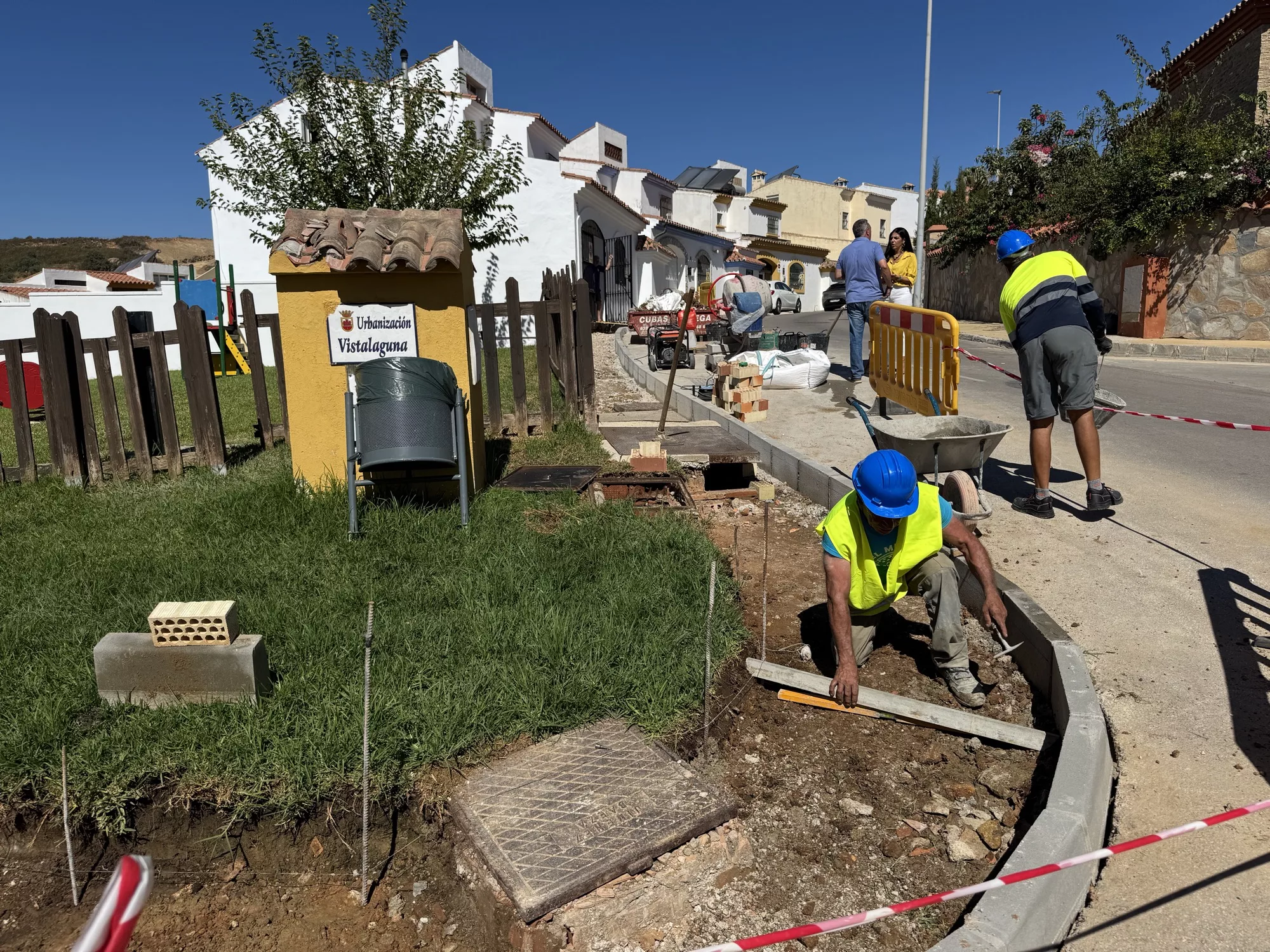 En concreto, desde el departamento de Obras y Servicios se está rehabilitando una acerado en la entrada de la urbanización Vistalaguna, en la calle Las Palmeras, que se encontraba en muy mal estado