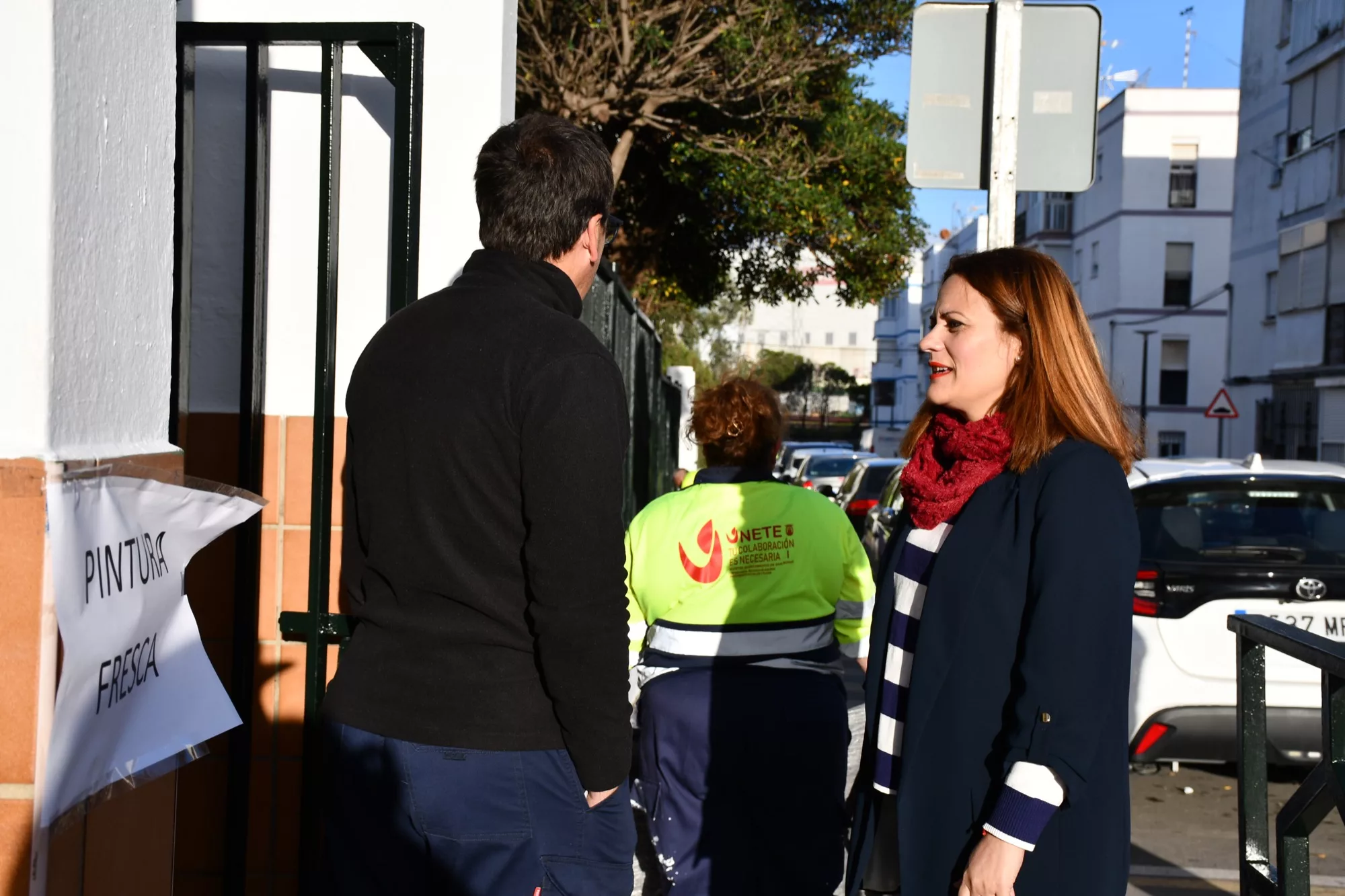 La teniente alcalde delegada de Educación, Mónica Córdoba, ha realizado, en la mañana de hoy lunes, una visita a los trabajos de pintura que se están llevando a cabo en el CEIP Sagrado Corazón de Puente Mayorga. Unas labores que realizan trabajadores adscritos al Plan de Empleo de Emadesa iniciado hace algunas semanas.