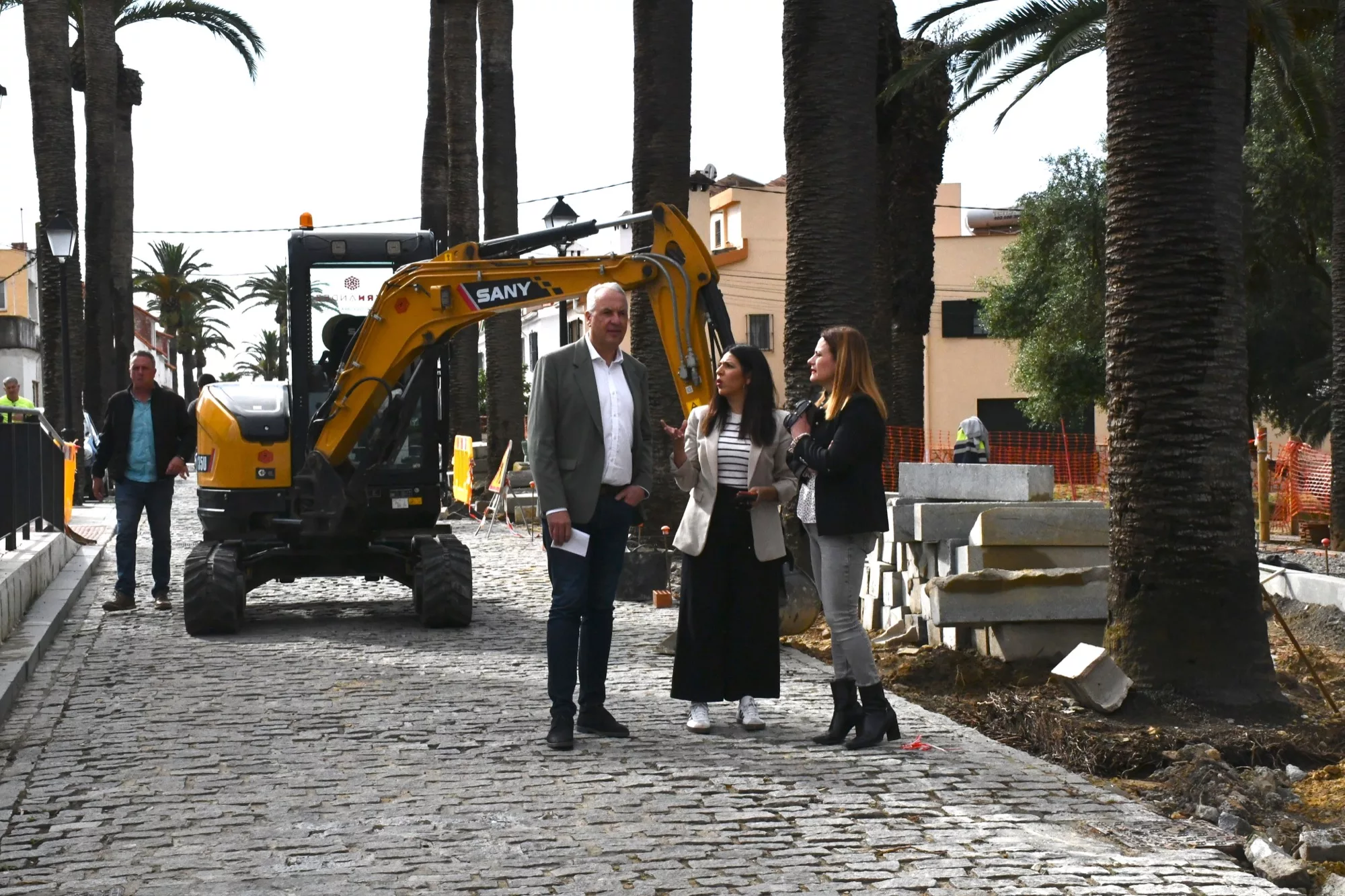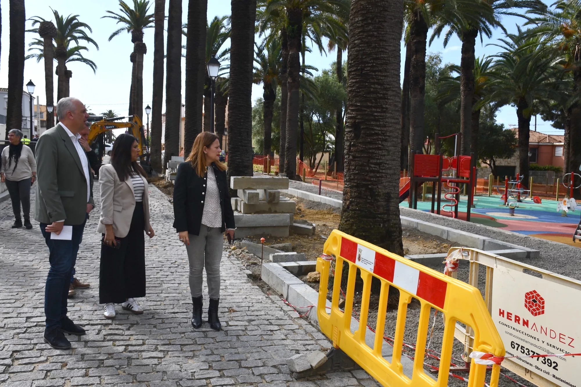 El alcalde, Juan Carlos Ruiz Boix, ha visitado el Paseo de las Palmeras de Campamento acompañado por las tenientes de alcalde de Bahía y de Obras y Servicios, Mónica Córdoba y Belén Jiménez. Se trataba de supervisar los trabajos que se realizan en esta vía, donde se está aumentando el número de plazas de aparcamiento disponibles, además de que se está renovando parte del acerado de la calle Aurora.