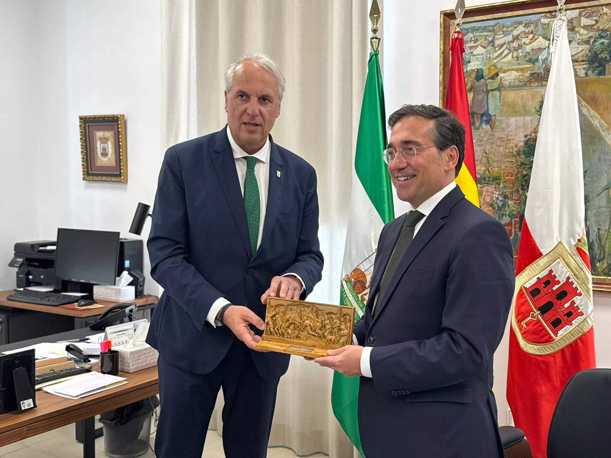 El ministro de Asuntos Exteriores, Unión Europea y Cooperación, José Manuel Albares, ha sido recibido oficialmente esta mañana en el Consistorio sanroqueño por el alcalde de San Roque, Juan Carlos Ruiz Boix, y el Gobierno municipal.