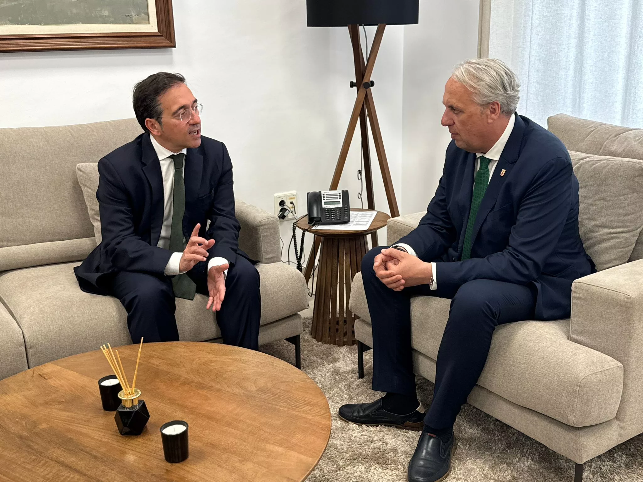 Tras la firma en el libro de honor del Ayuntamiento y una breve charla en la alcaldía, el ministro se ha reunido con miembros de la Corporación en la sala de Alcaldía.